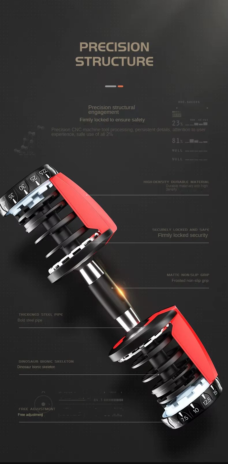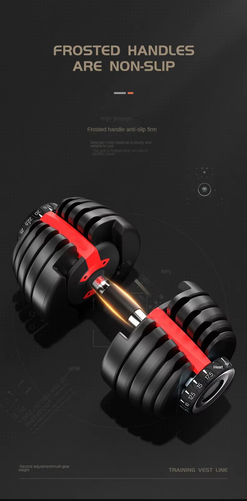 The new adjustable dumbbell can be easily adjusted by rotating the dials at both ends, and the weight can be adjusted in 1 second. One adjustable dumbbell = multiple ordinary dumbbells, stainless steel dumbbell plates forged by special technology, no rust, precision structural meshing, frosted handles anti-slip.