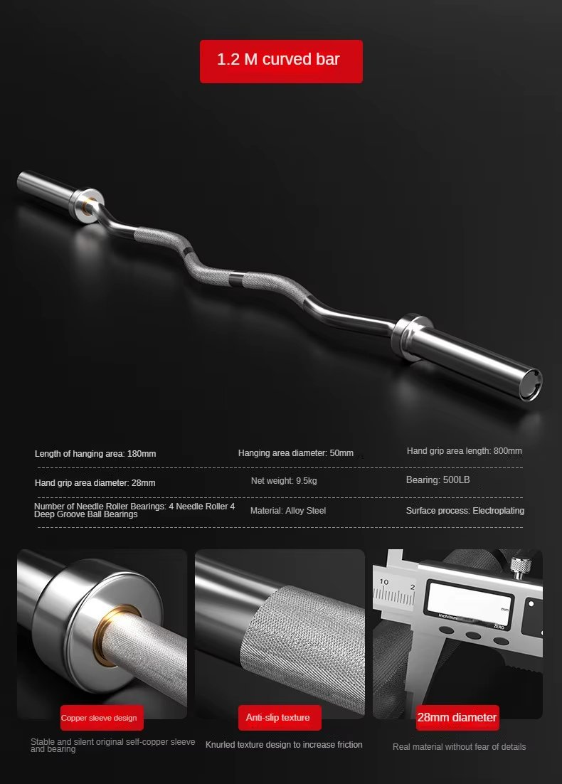 Feature Highlights:Designed for powerlifting and fitness training, this 20kg commercial chrome bent bar is made from durable steel and has a load capacity of up to 1500 lbs. Its 2.2-meter size is suitable for commercial use and supports bodybuilding exercises. Custom logo services are also available to personalize your fitness equipment.