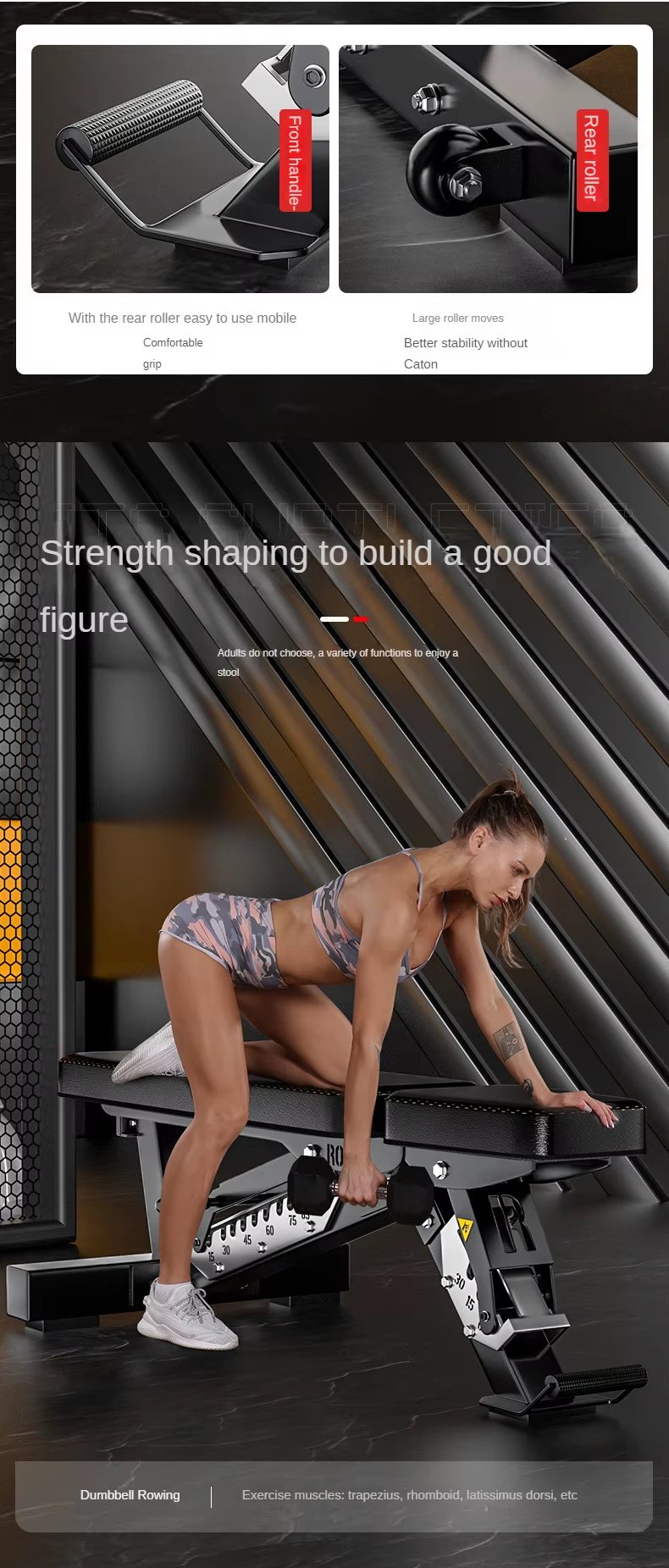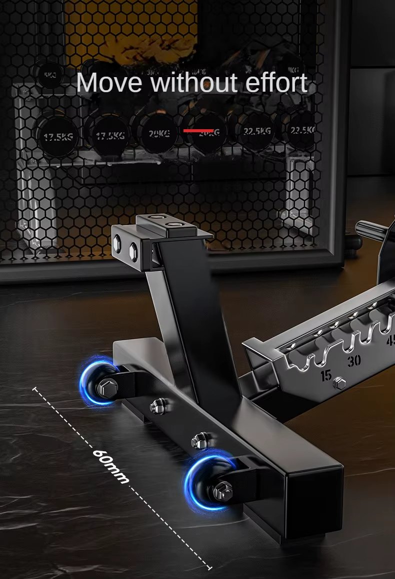 Feature Highlights:Commercial bench with wheels, focus on commercial quality manufacturing, triangular mechanical design, stable for heavy equipment. The pipe is thickened by 3.5 mm and has a super load-bearing capacity of 800 kg. The quality of the pipe is guaranteed by genuine materials. Front handle and rear roller for effortless movement. The serrated gear adjustment bracket provides strength and shaping to create a good figure.