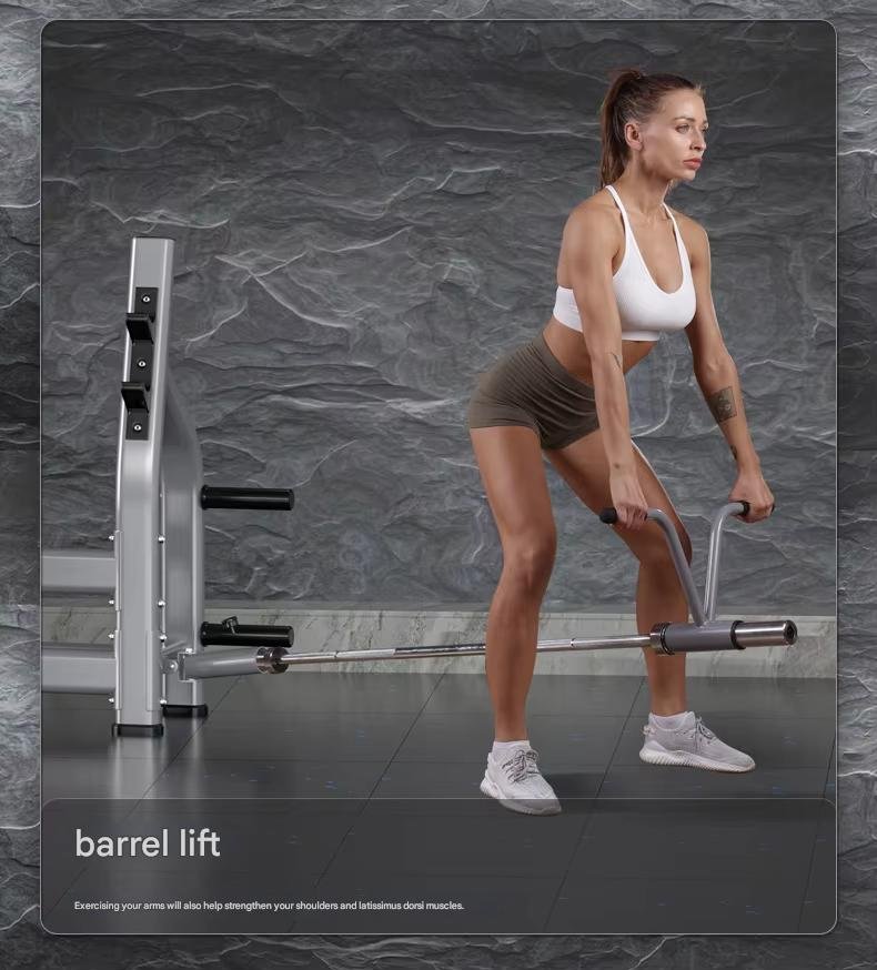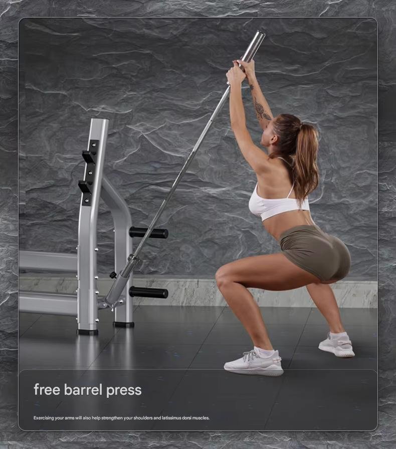 Feature Highlights:It occupies a small area, has a stable structure, has thickened pipes with strong load-bearing capacity, shock-absorbing rubber limits, effective buffering and protection equipment, and pentagonal support columns. The scientific design is safer, and the upgraded anti-slip foot covers will not damage the floor. It is designed with a barbell hanging area for more convenient access. It is equipped with a barrel design and has richer functions.