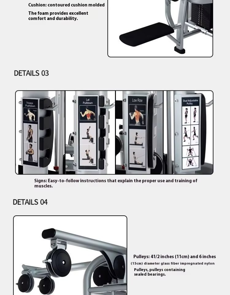 Made from durable steel, this versatile gym gantry equipment supports body shaping and targets multiple muscle groups including calves, chest, glutes, hamstrings, biceps, shoulders and triceps.