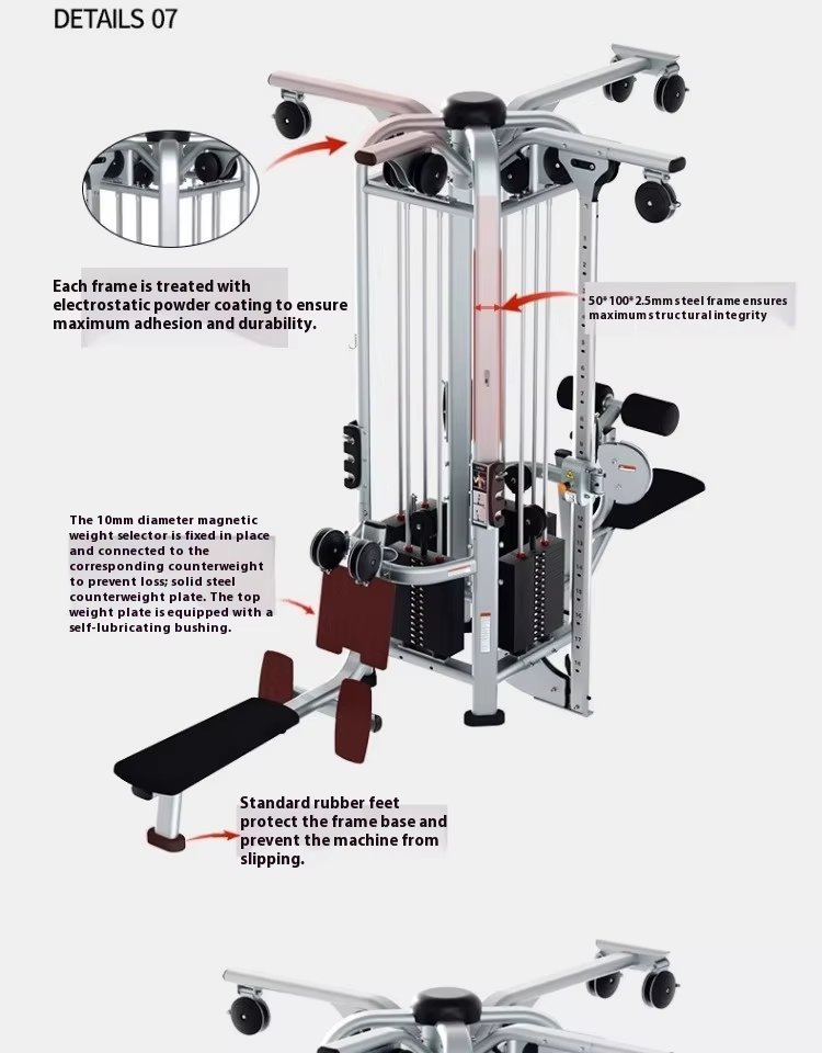 Feature Highlights:Made from durable steel, this versatile gym gantry equipment supports body shaping and targets multiple muscle groups including calves, chest, glutes, hamstrings, biceps, shoulders and triceps. It features customizable colors and logo designs, making it ideal for commercial use and flexible for strength training and cardio.