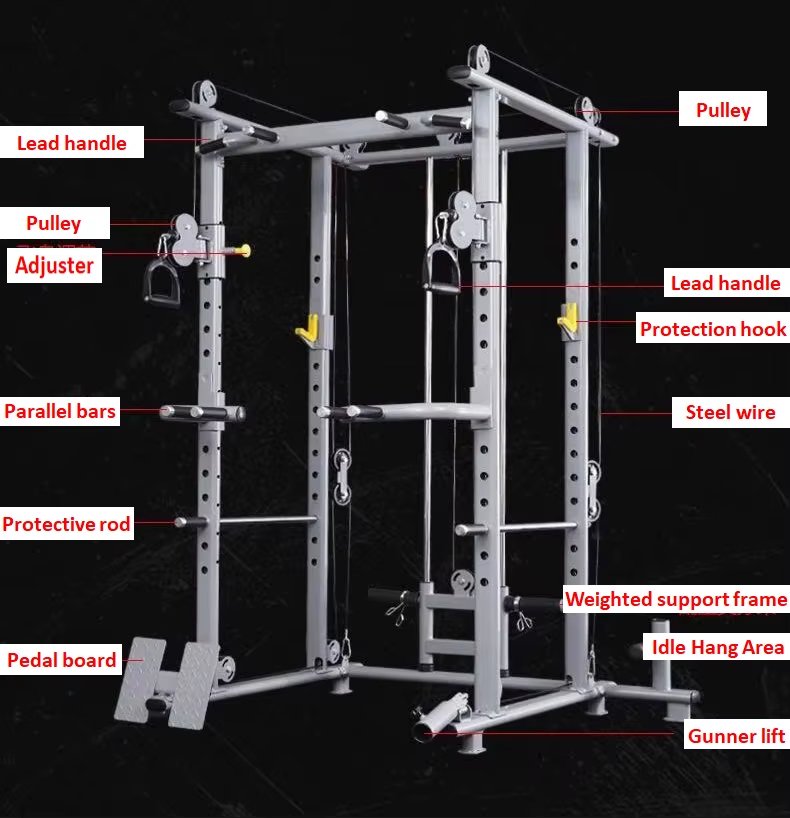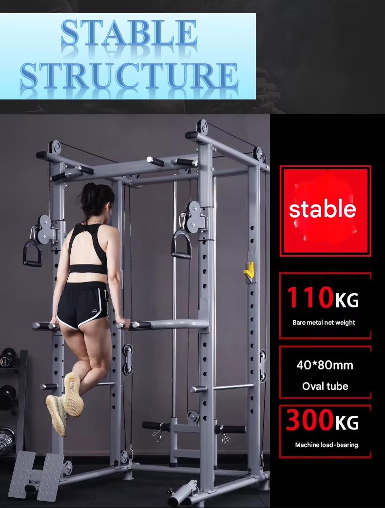 Feature Highlights:Multifunctional free squat rack, one piece of equipment, multiple training functions. Using robotic arm welding, the bite area is large and uniform, and the stability and safety are better. High-density laser cutting is more reliable and safer. The advantages of laser cutting are precise hole position, smooth cutting surface and high stability. The bare machine has a net weight of 110kg, uses 40*80 mm elliptical tubes, and the whole machine has a load-bearing capacity of 300kg. Multi-level adjustable, multi-functional component configuration can be combined freely to realize various exercise methods such as high pull-down, chest fly, standing rope leg extension, parallel bar extension, rope rowing and so on.