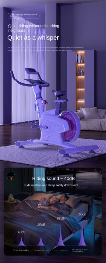 Feature Highlights:This spinning bicycle adopts a 360° wrapped flywheel design, five-speed precise resistance adjustment, and free control of high-intensity and low-intensity. The rear flywheel structure simulates real road riding, and the 8kg magnetically controlled flywheel doubles the fat burning effect. Light, beautiful, easy to move, compact and does not take up space. L-shaped tripod, H-shaped support + iron triangle, can easily bear 800kg, safe and worry-free. Isolate noise and ride silently without disturbing people. Q soft rebound seat cushion, comfortable driving, more lasting exercise experience, all-round monitoring data, helping to burn fat and increase muscle.