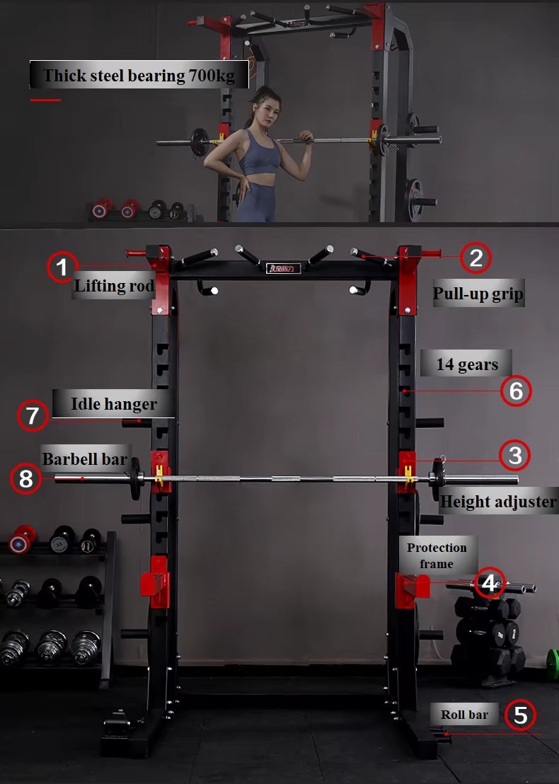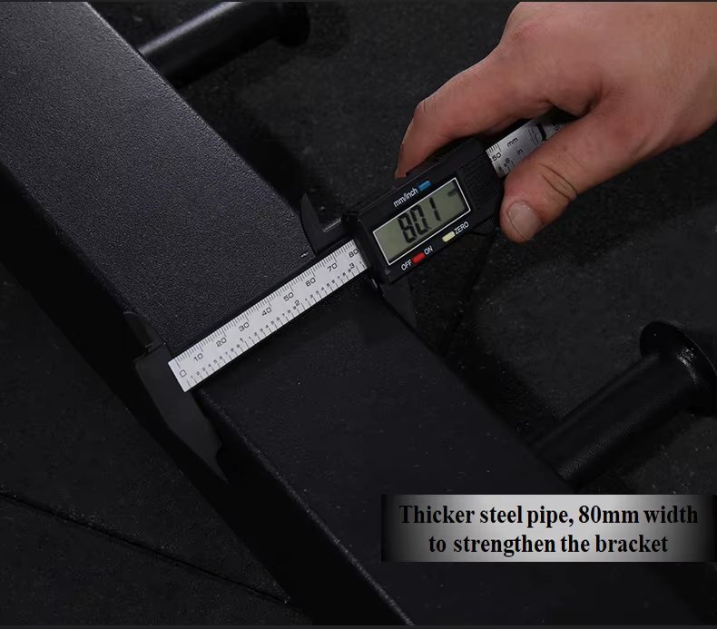 This professional squat rack uses thickened steel pipes, 80 mm width reinforced brackets, and the thick steel can bear a load of 700 kg. There are various exercise methods, which can effectively exercise the muscles of the buttocks, legs and other parts of the body.