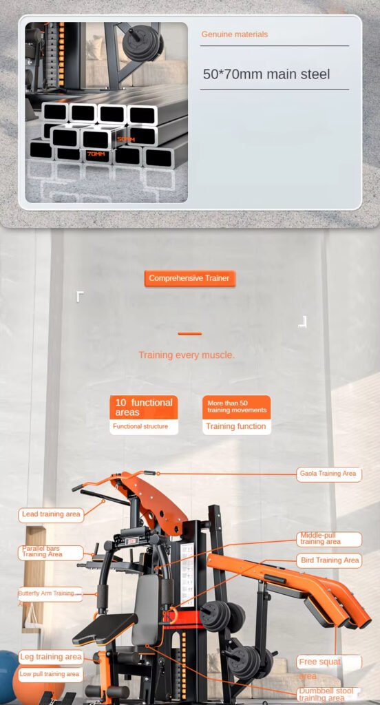 One machine = half a gym, 10 functional areas, 50+ training functions, more than 50 training movements, all-round multi-person training, and can train every muscle. Real materials, more scientific design.